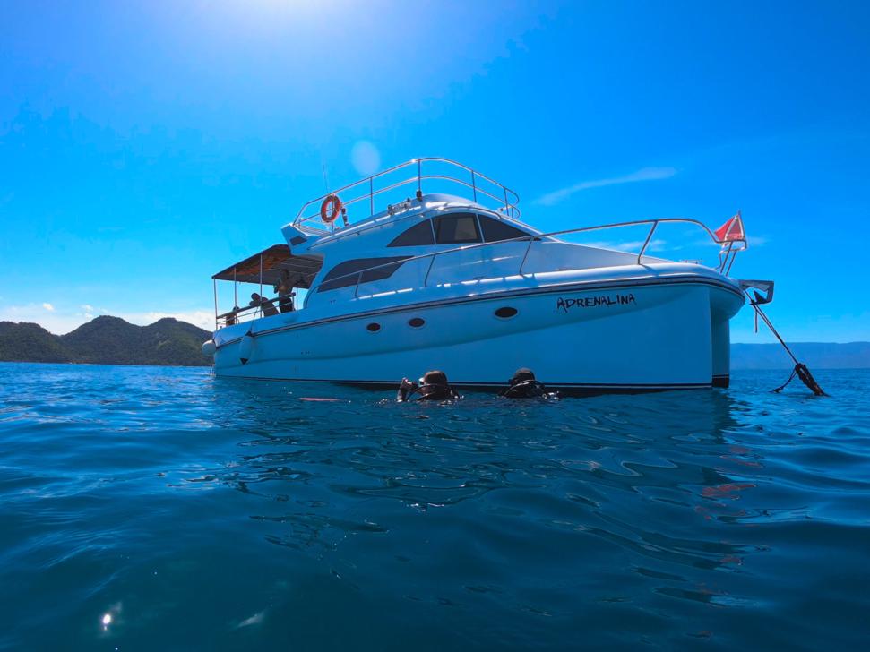 Com uma bela navegação, o trajeto até os pontos de mergulho apresenta uma paisagem de encher os olhos. A costa, coberta pela imponente Mata Atlântica, é pontuada por pequenas praias paradisíacas, criando um cenário digno de filme.